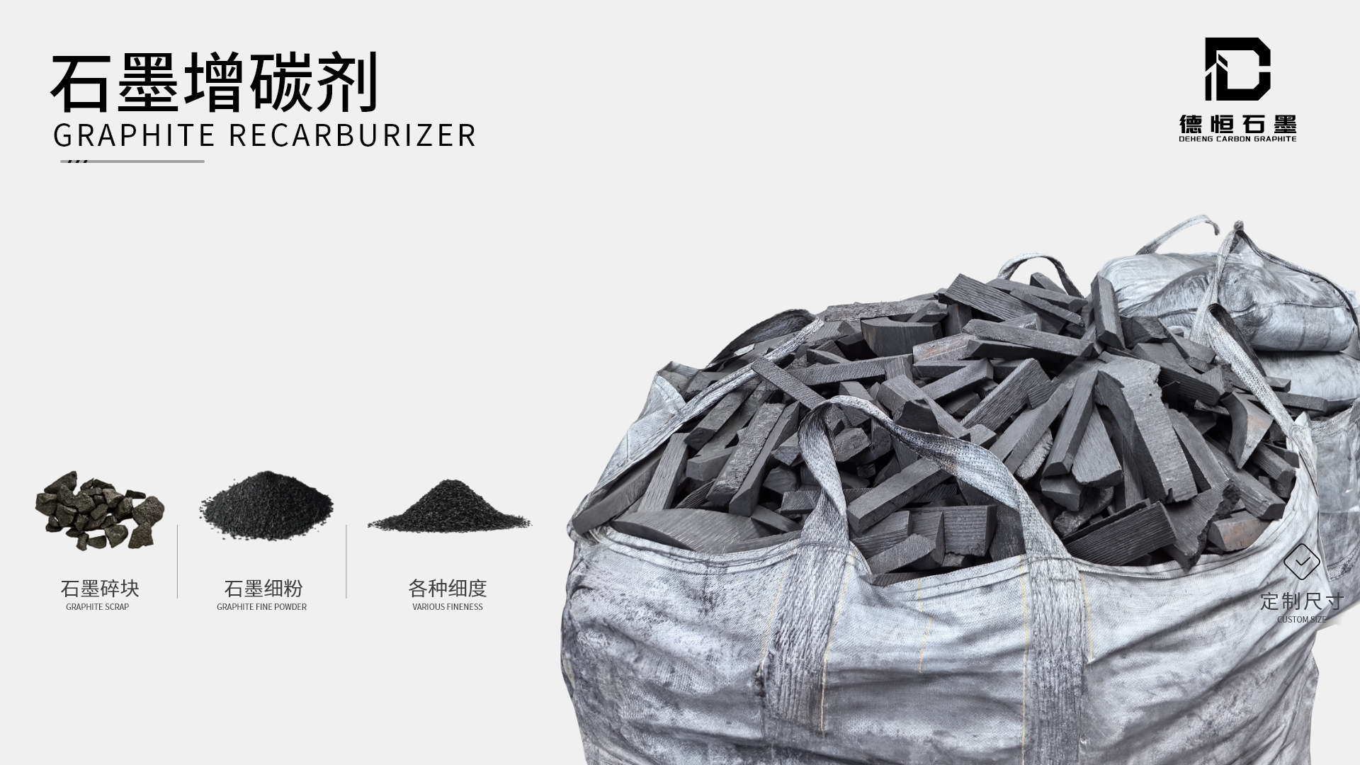 石墨增增碳剂分为:石墨碎块、石墨细粉、各种细度